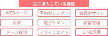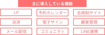 LP作成、メルマガ配信、予約受付、オンライン決済など、Webビジネスに必要となる多くの機能をカバーしており、様々な業務を自動化できます。