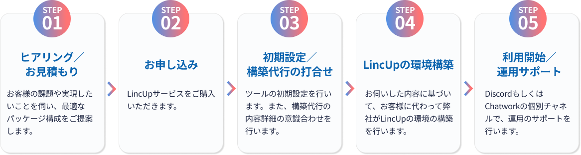 LincUpでは、お客様に代わって構築を行うだけでなく、